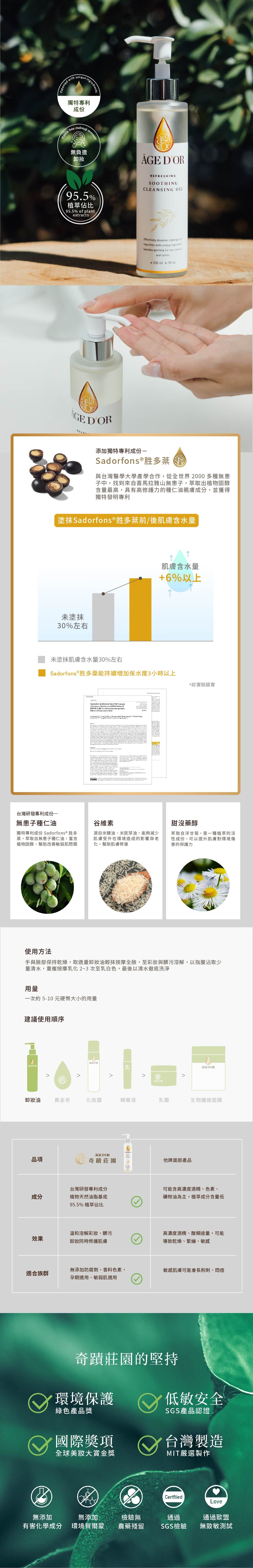 植物油配方自然卸妝油,深入毛孔帶走髒污與妝容,減少摩擦、刺激,不緊繃的抗老潔淨。